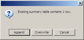 Figure 5.11: Prompt to Overwrite/Append Summary Tables